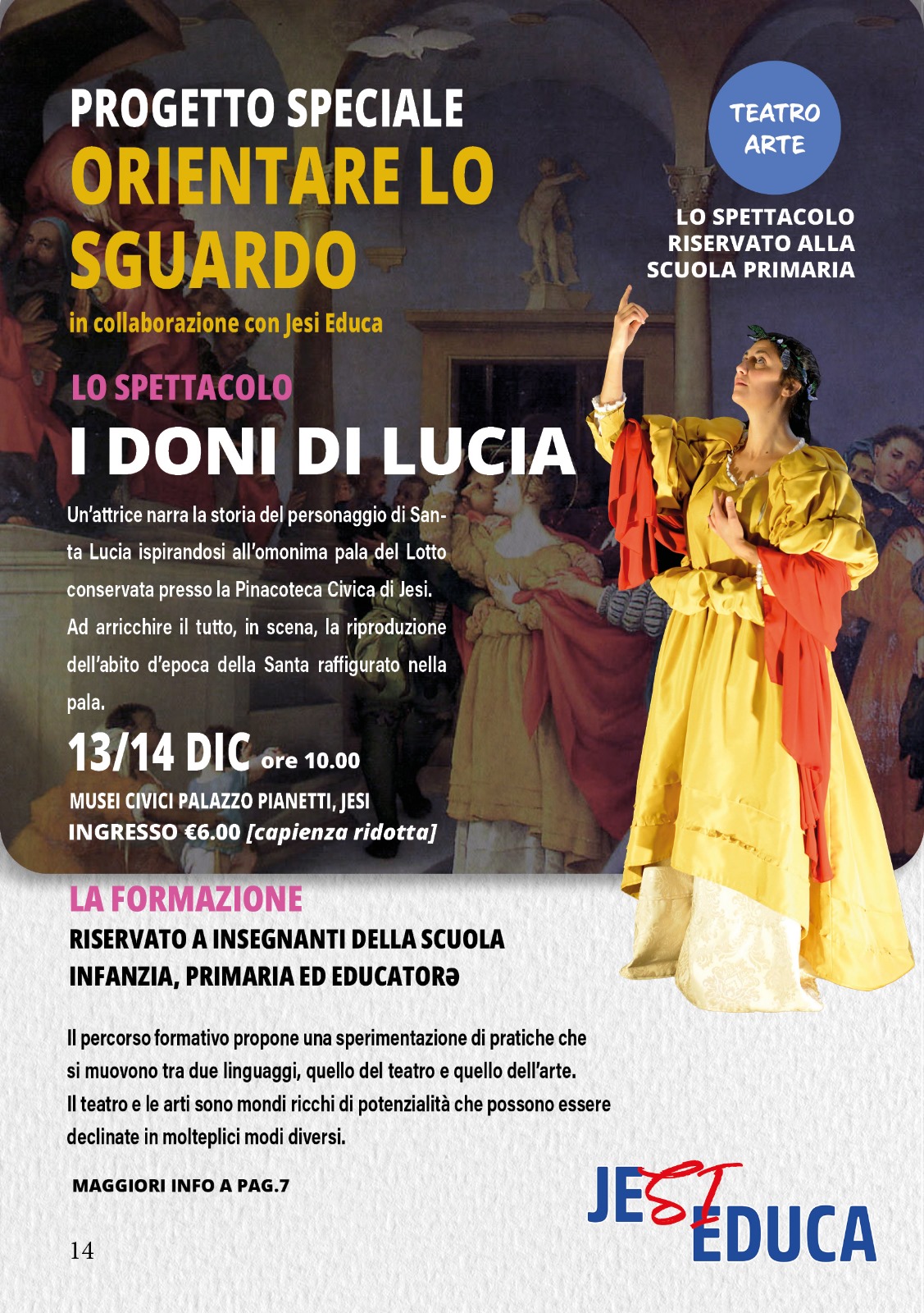 Un'attrice narra la storia del personaggio di Santa Lucia ispirandosi all'omonima pala del Lotto conservata presso la Pinacoteca Civica di Jesi