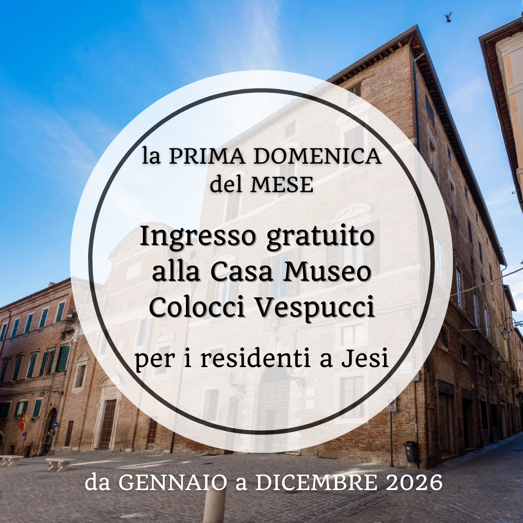Per tutto il 2026 sarà visitabile gratuitamente la Casa Museo Colocci Vespucci: antica residenza gentilizia dei marchesi Colocci Vespucci, costruita nella seconda metà del XVI secolo, la casa museo è allestita nelle stanze dell’appartamento al secondo piano dell’omonimo palazzo sito in piazza A. Colocci 8 (di fronte al Palazzo della Signoria). Gli ambienti, tra stanze, salottini e saloni di rappresentanza, custodiscono arredi, oggetti e numerosi ritratti che consentono di scoprire lo stile di vita di una delle più antiche e importanti famiglie aristocratiche jesine.