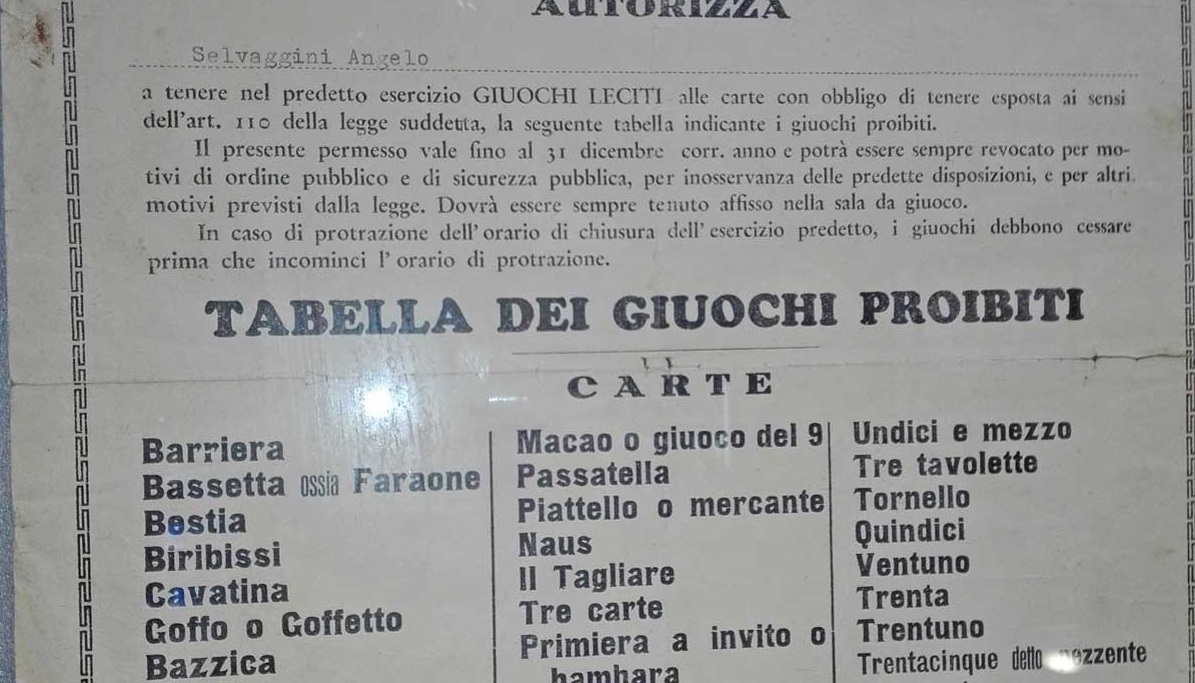 So informano i titolari di locali pubblici e circoli privati autorizzati al gioco che è stata approvata la nuova tabella dei giochi proibiti che deve essere esposta in luogo visibile nelle sale da biliardo o da gioco, e negli esercizi, compresi i circoli privati, autorizzati alla pratica del gioco o all'instalalzione di apparecchi da gioco.