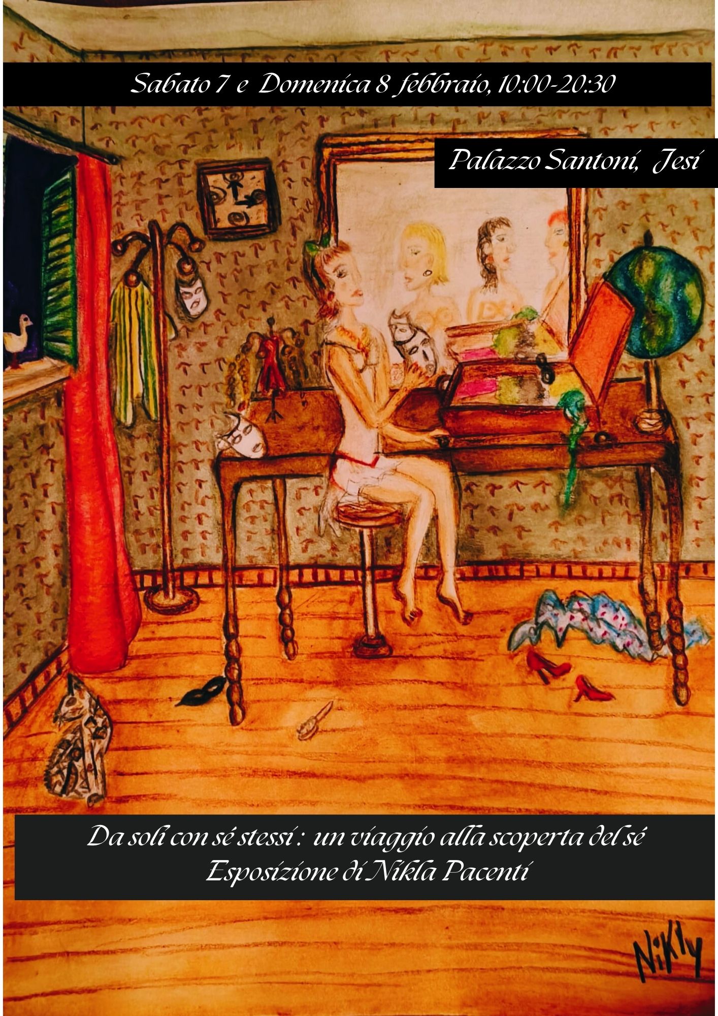 Mi presento, sono Nikla Pacenti, nata a Jesi, ho 30 anni, medico per professione e passione, pittrice nel tempo libero. Ritengo che l’arte sia la massima forma di comunicazione ed espressione libera del sé. Pur avendo una formazione prevalentemente scientifica, mi sono appassionata al disegno fin dall’infanzia, quando mia madre (ormai venuta a mancare 10 anni fa per malattia) mi ha trasmesso questo interesse. Il mio primo “debutto” è stato durante le Scuole Medie in cui avevo preso parte ad un progetto scolastico in collaborazione con la Repubblica Ceca vincendo il premio per il miglior disegno sulla del paese natale: una confezione di Pastelli Acquerellabili Mondeluz che ancora conservo (seppur consumati) come ricordo di quell’evento. Crescendo ho continuato a disegnare a scuola o come hobby, alternando fasi di maggiore produttività a fasi di silenzio in relazione alla mia prevalente dedizione all’ambito scientifico. Dopo diversi anni ho deciso di aprire una pagina instagram (Nikly_art), spinta dal desiderio non solo di esporre i miei lavori, ma anche di condividere pensieri ed opinioni che sono frutto della rielaborazione di esperienze personali, dibattiti con amici, colleghi e pazienti. Sono infatti molto attratta dal mondo della psicologia e della filosofia e mi piace analizzare le cose in profondità, andando oltre le apparenze. Lo scorso aprile ho esposto per la prima volta i miei lavori in occasione dell’evento “Badia in Libertà”, tenutosi presso la Badia di San Vittore, un’iniziativa nata dal desiderio di diffondere il potere liberatorio dell’arte nelle sue varie forme (arte pittorica, scultura, fotografia, musica, letteratura). Ricordo ancora come da un’idea apparentemente irrealizzabile, astratta, di complessa attuazione sono riuscita, grazie alla collaborazione di splendide persone, a realizzare questo sogno, con la creazione di un evento anche più interessante di quello che avevo inizialmente immaginato, con tanta adesione e soddisfazione dal pubblico, ma soprattutto un’occasione di crescita e scambio culturale.