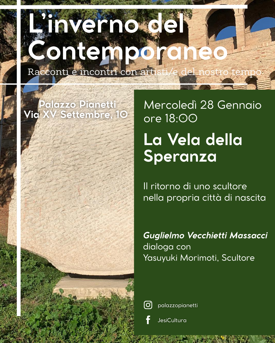 La rassegna "L'Inverno del Contemporaneo. Racconti e incontri con artisti/e del nostro tempo" porta a Palazzo Pianetti lo scultore di origini jesine Guglielmo Vecchietti Massacci.