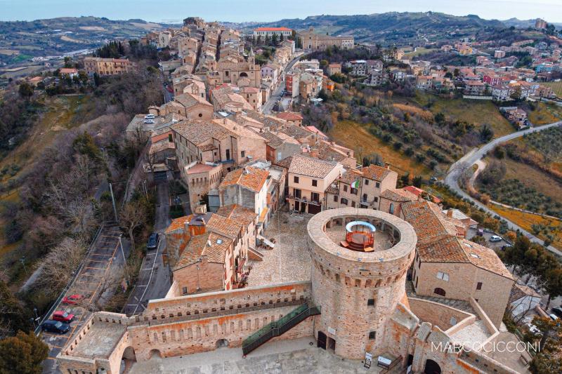 Di origine picena fu proprietà della famiglia filoimperiale degli Acquaviva che qui costruì la fortezza ampliando la piccola fortificazione precedente. Alla fine del Quattrocento le nuovi armi nate con la polvere da sparo, costrinsero i vecchi castelli a modificare le loro mura con alte scarpature e terrapieni per assicurare maggiore robustezza contro i colpi dell'artiglieria. Questo ammodernamento si presume essere stato progettato da Baccio Pontelli che lasciò la realizzazione alle maestranze locali. All'interno dell'alto mastio è allestito il Museo La Fortezza nel Tempo con un mini percorso tattile per ipovedenti, l’esposizione di preziosi reperti piceni rinvenuti nel territorio acquavivano, e un filmato navigabile a 360° con visori virtuali che narrano l'evoluzione storico-architettonica della Fortezza. All'interno delle mura si schiude un borgo di rara bellezza con piccoli gioielli artistici come la trecentesca chiesa un tempo San Nicola oggi di San Rocco con facciata romanica decorata da bacini ceramici, la chiesa parrocchiale di San Nicola costruita tra il 1570 e il 1602 ampliando l’originale chiesetta (oratorio) di San Rocco, la chiesa di San Lorenzo fondata dagli Agostiniani nell’anno 1613, la chiesa di San Giorgio e la chiesa di Santa Maria delle Palme. Una vista è d'obbligo anche al Palazzo Cancelli, sede del comune, con le magnifiche sale affrescate da scene mitologiche e, al pianoterra, le Sale del Palio dedicato alla rievocazione Sponsalia e fucina di mostre e convegni.