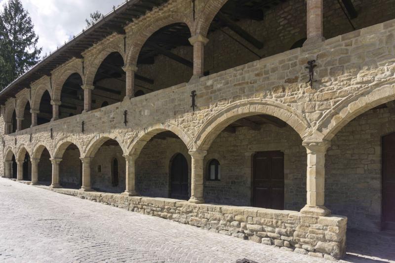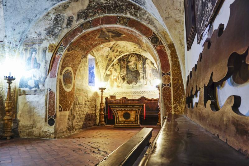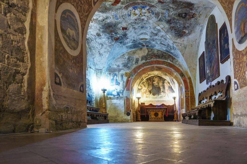 L’odierno monastero è frutto della ricostruzione del 1421 quando si aggiunse il convento che ancora oggi ospita i francescani e accoglie molti turisti. La chiesa di Santa Maria delle Macchie è tra quelle fondate dai confratelli di San Benedetto prima dell'anno Mille con un'insolita cripta divisa in sette piccole navate con capitelli decorati di epoca romana.